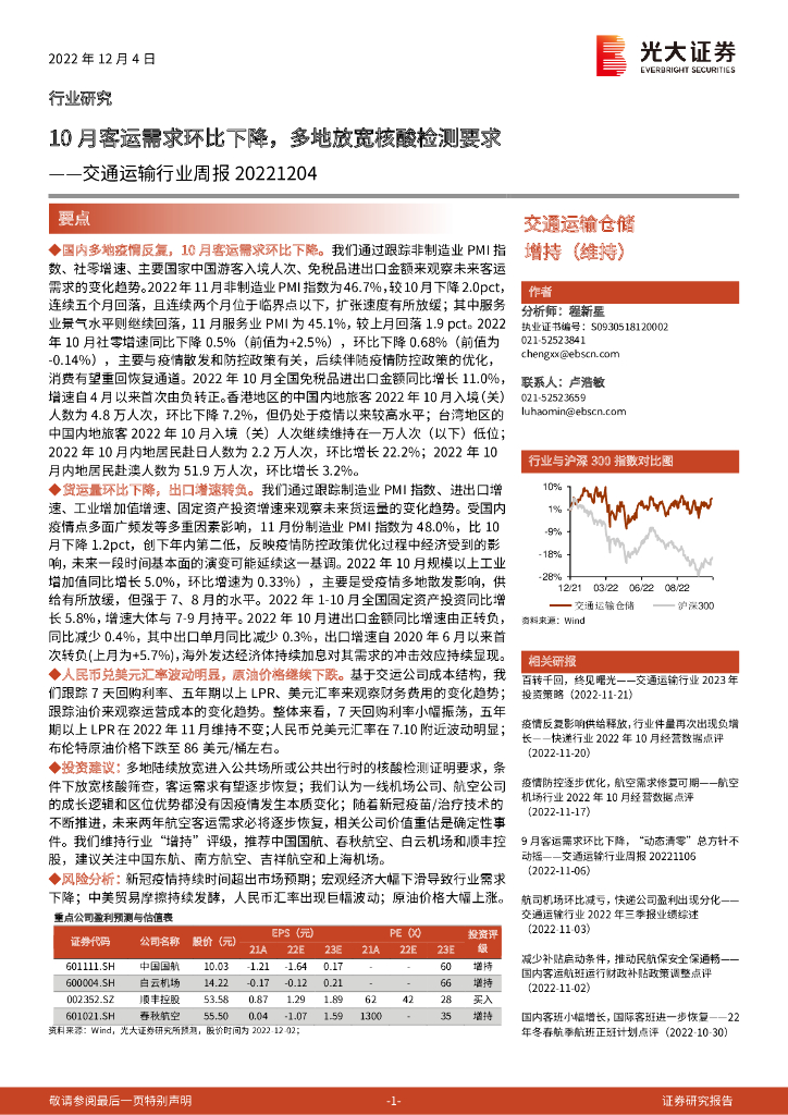 光大证券:交通运输行业周报:10月客运需求环比下降,多地放宽核酸检测要求.pdf