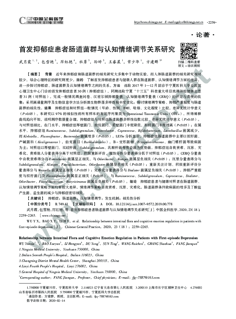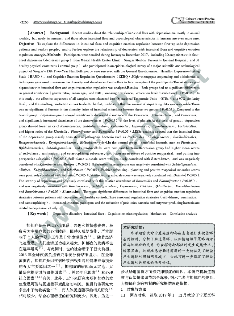 首发抑郁症患者肠道菌群与认知情绪调节关系研究.rar