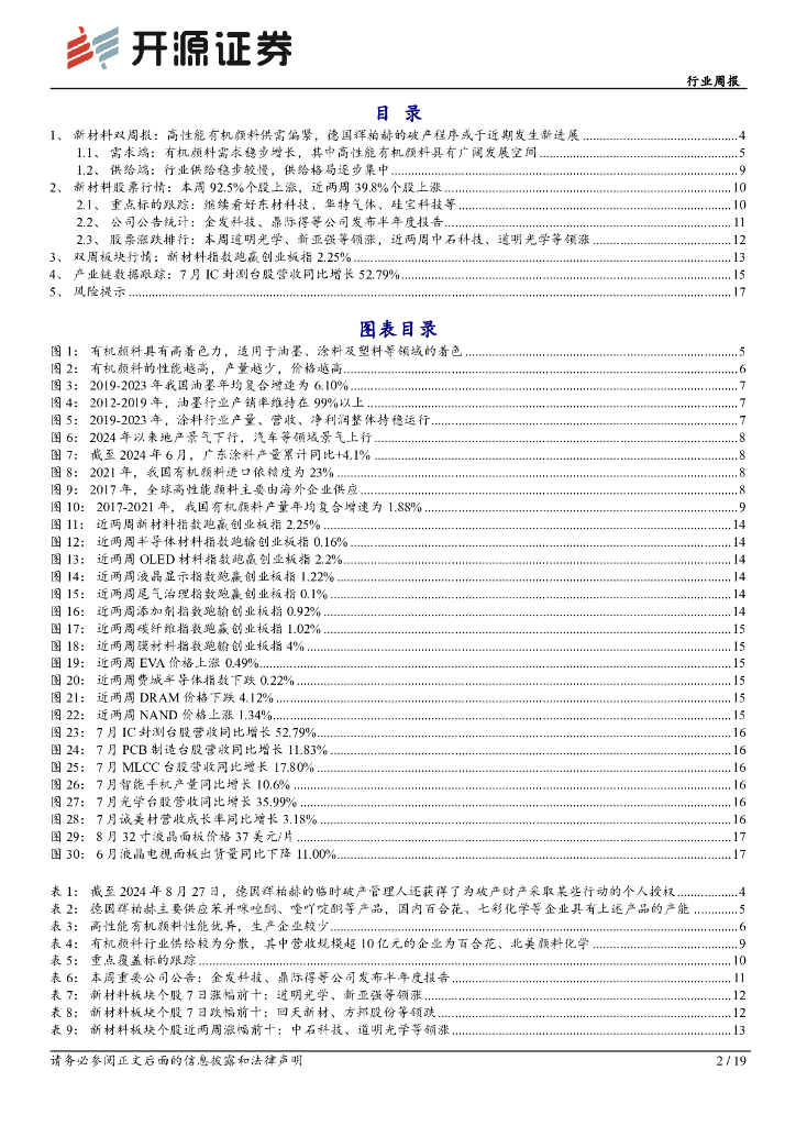 开源证券:基础化工行业周报:高性能有机颜料供需偏紧,德国辉柏赫的破产程序或于近期发生新进展.pdf