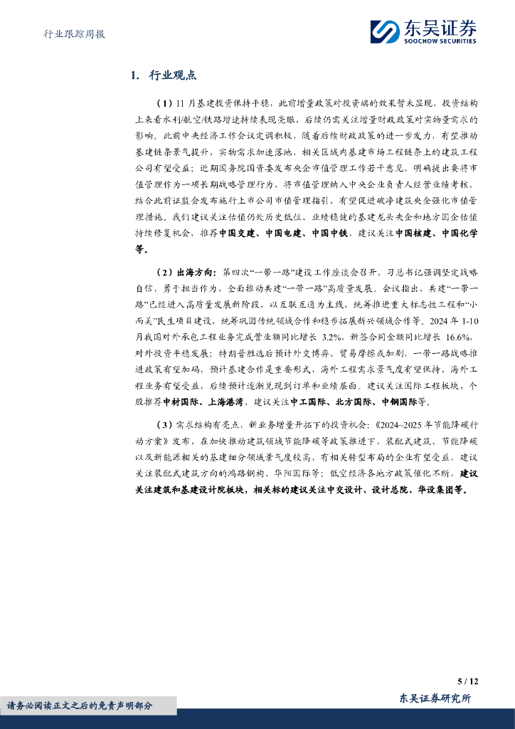 东吴证券:建筑装饰行业跟踪周报:基建投资保持平稳,关注央企市值管理工作.pdf