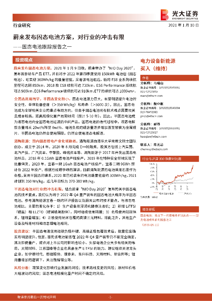光大证券:电力设备新能源:固态电池跟踪报告之一-蔚来发布固态电池方案,对行业的冲击有限.pdf
