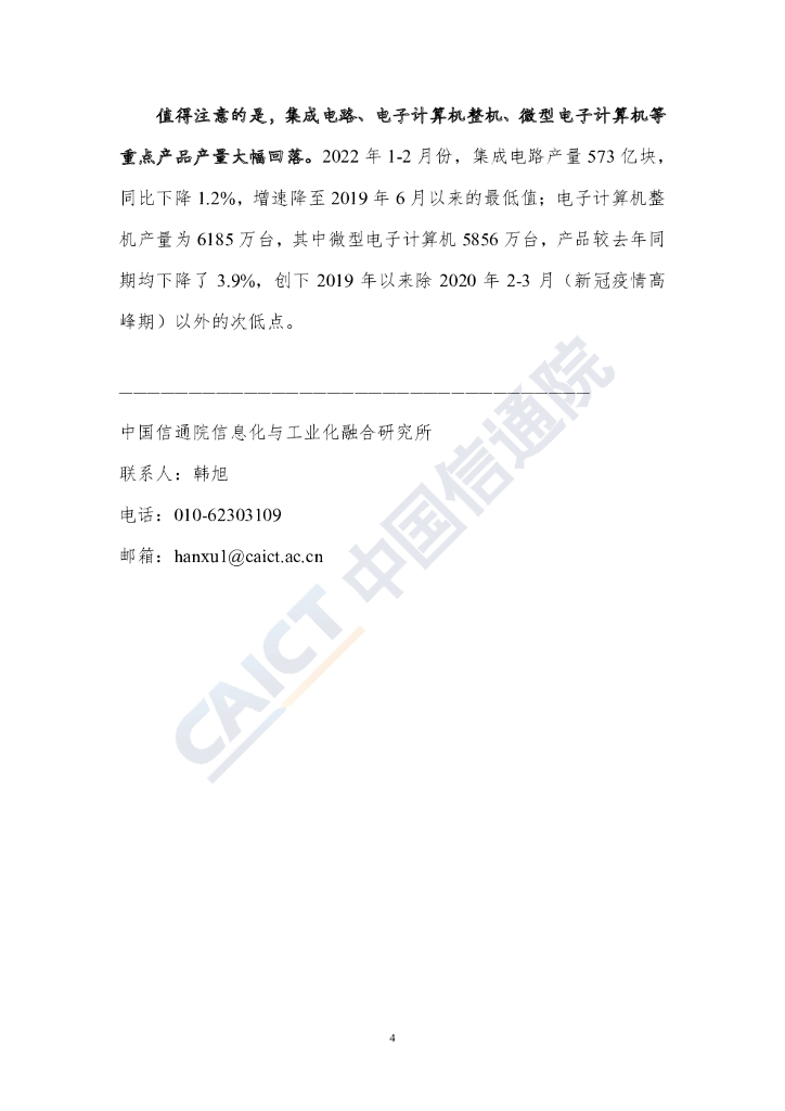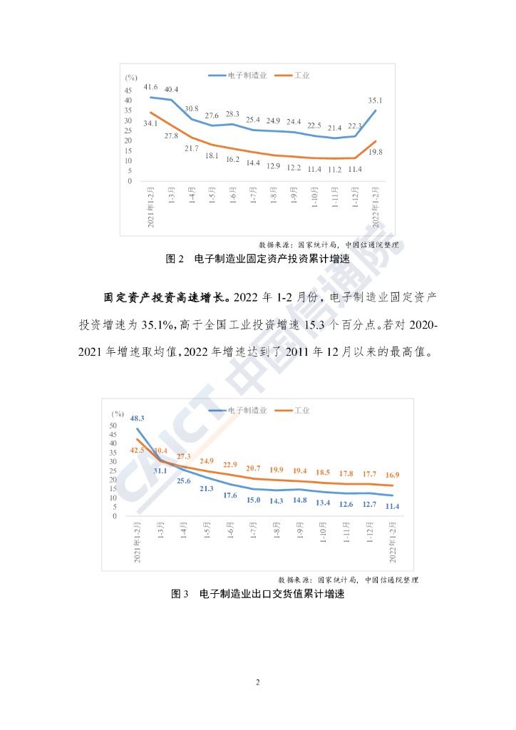 中国信通院:2022年1-2月电子行业运行监测报告: 电子行业高景气度持续,发挥工业增长“压舱石”作用.pdf