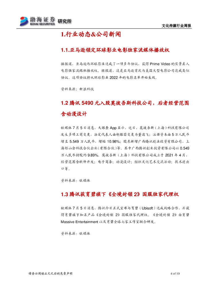 渤海证券:文化传媒行业周报:行情低迷,中线关注业绩优秀的白马.pdf