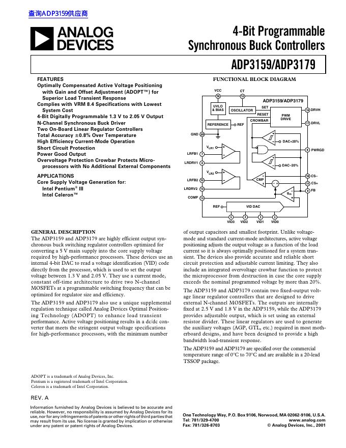 ANALOG DEVICES ADP3159/ADP3179 4-Bit Programmable Synchronous Buck Controllers 数据手册.pdf