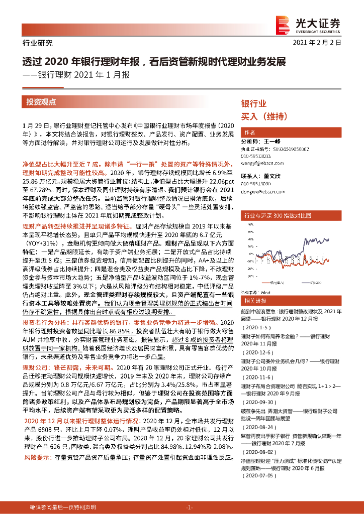 光大证券:银行理财2021年1月报:透过2020年银行理财年报,看后资管新规时代理财业务发展.pdf