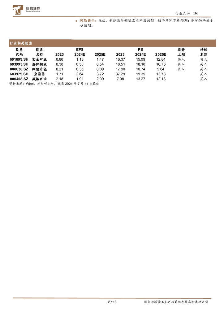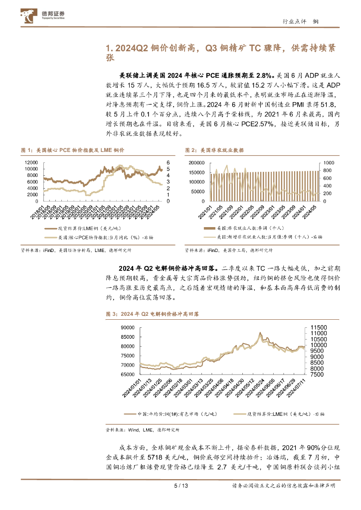 德邦证券:铜行业跟踪:24Q2铜价创新高,Q3TC骤降,供需持续紧张.pdf