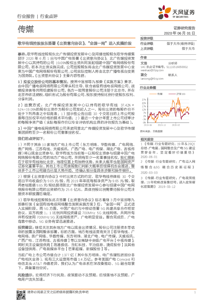 天风证券:传媒行业点评:歌华有线控股股东签署《出资意向协议》,“全国一网”进入实操阶段.pdf