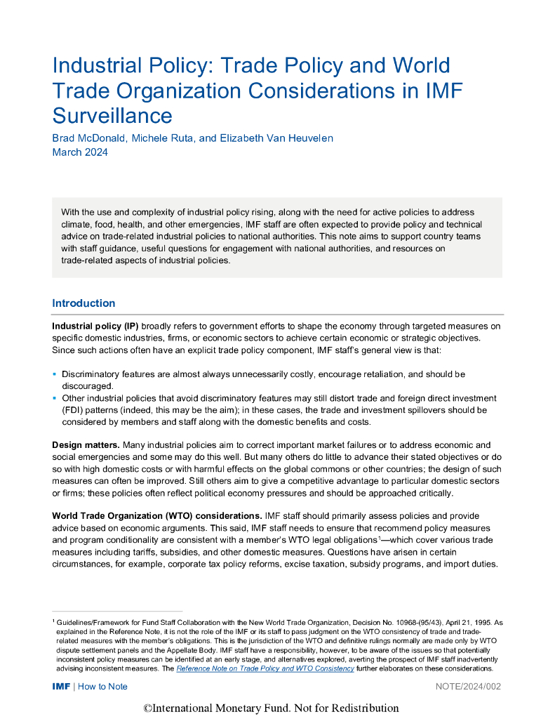 国际货币基金组织:2024年产业政策:国际货币基金组织监督下的贸易政策和世界贸易组织考虑报告(英文版).pdf