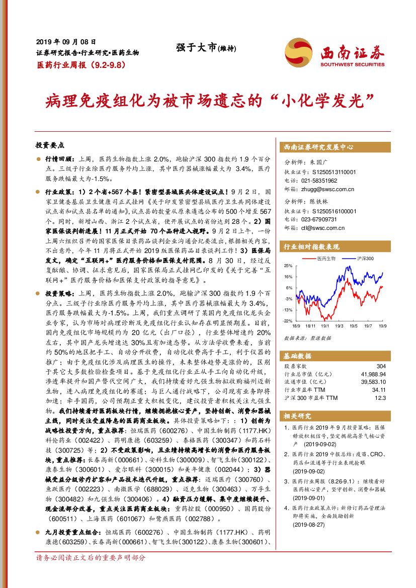 西南证券:医药行业周报:病理免疫组化为被市场遗忘的“小化学发光”.pdf
