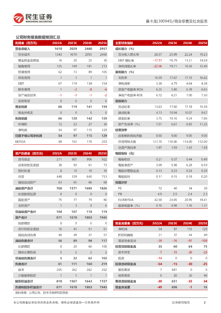 民生证券:曼卡龙(300945)-2023年中报点评:23H1线上渠道表现亮眼,定增募资落地再添发展势能.pdf