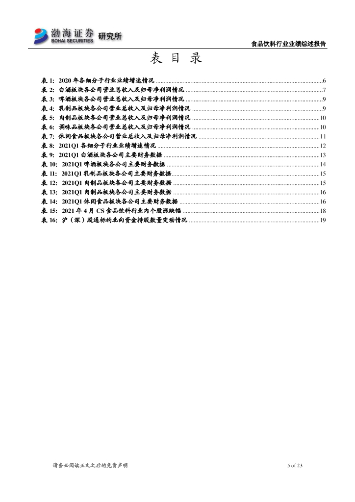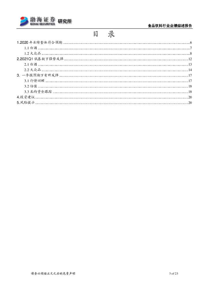 渤海证券:食品饮料行业2020年年报及2021年一季报业绩综述:白酒分化明显 食品预期改善.pdf