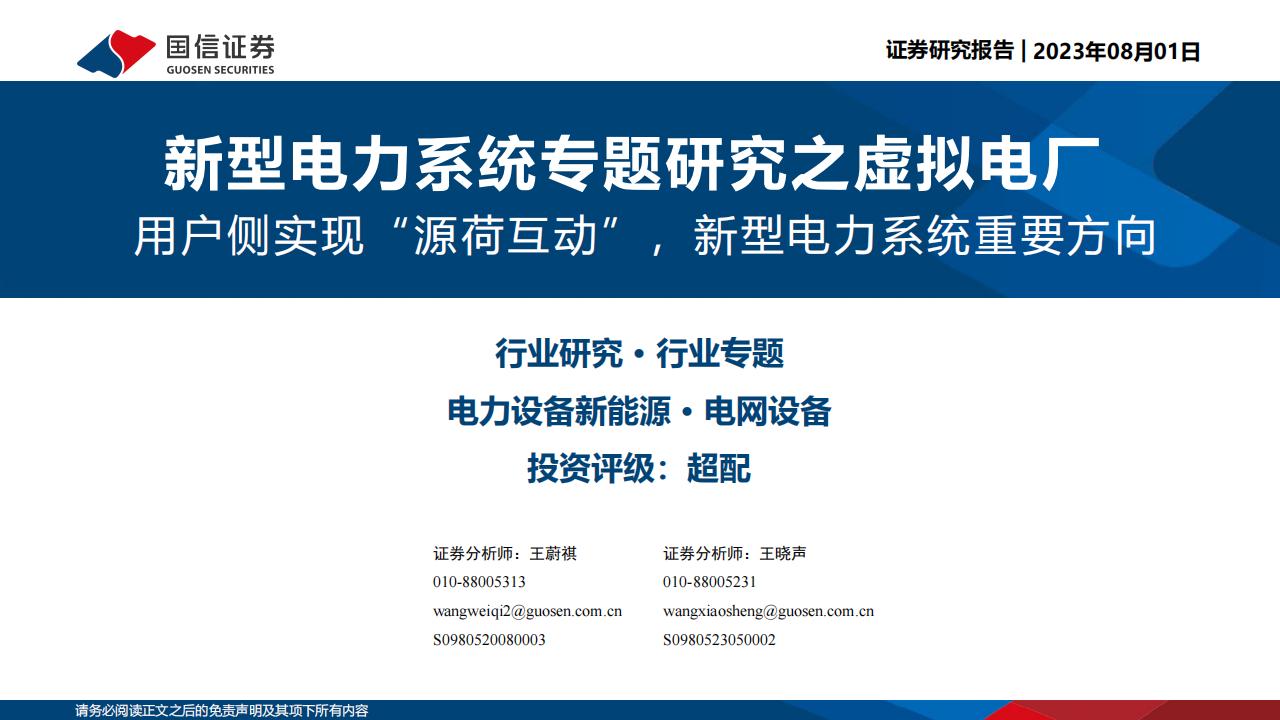国信证券:新型电力系统专题研究之虚拟电厂:用户侧实现“源荷互动”,新型电力系统重要方向.pdf