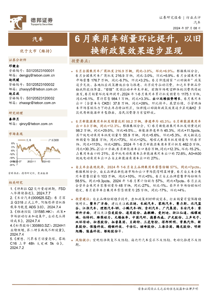 德邦证券:汽车行业点评:6月乘用车销量环比提升,以旧换新政策效果逐步显现.pdf