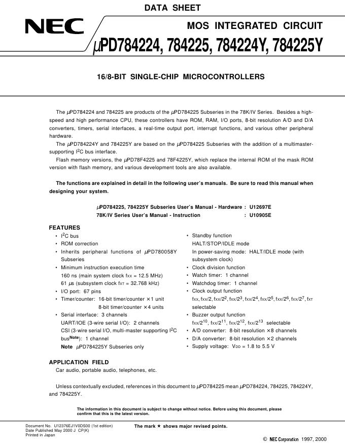 NEC μPD784224/784225/784224Y/784225Y 数据手册.pdf