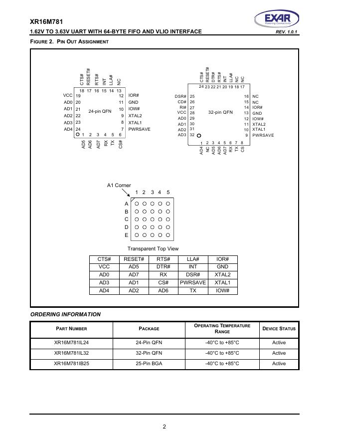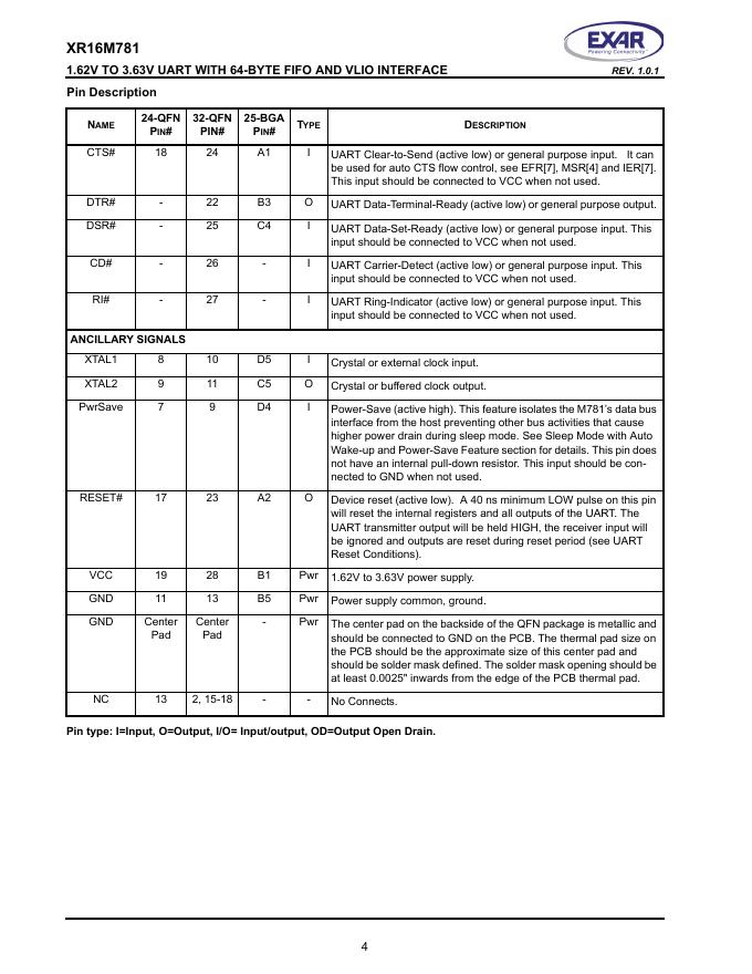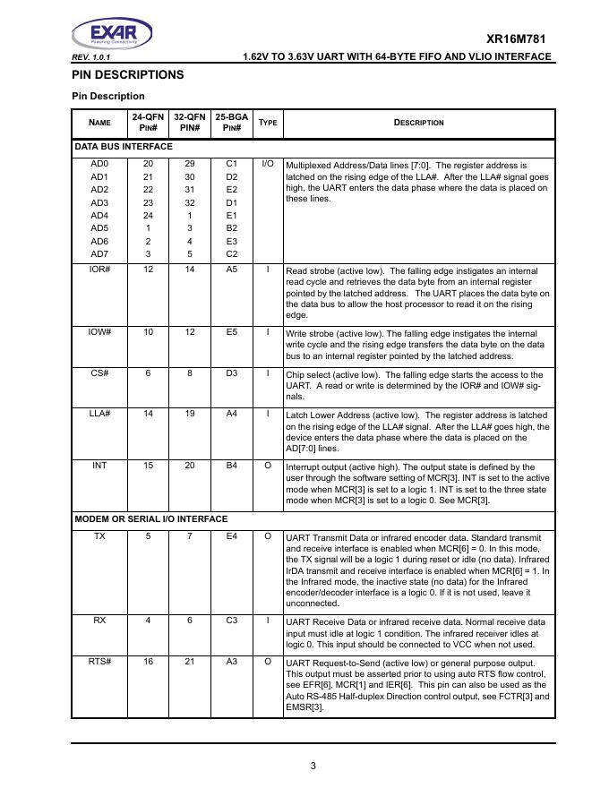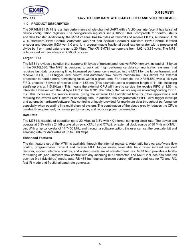 EXAR XR16M781 1.62V TO 3.63V UART WITH 64-BYTE FIFO AND VLIO INTERFACE 数据手册.pdf