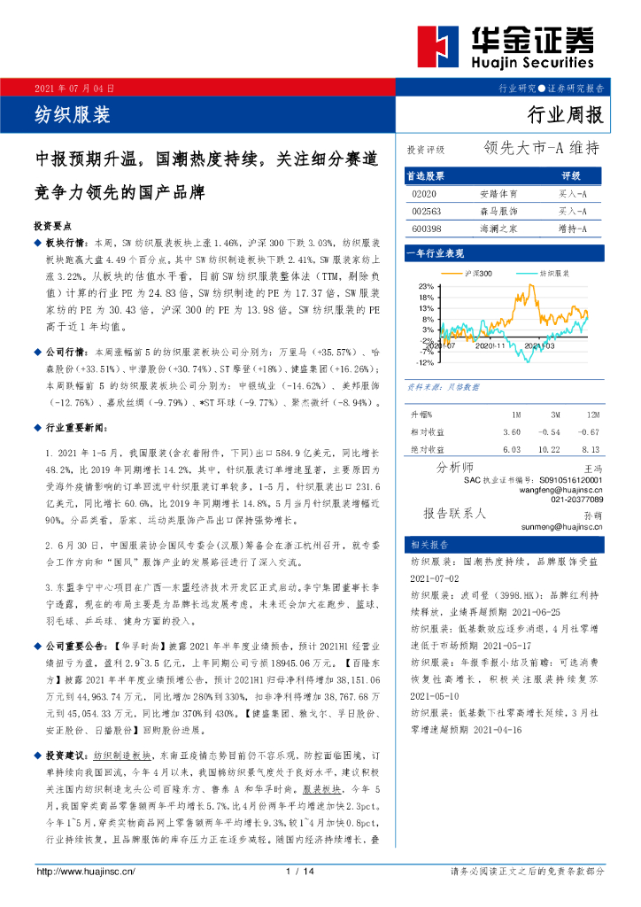 华金证券:纺织服装行业周报:中报预期升温,国潮热度持续,关注细分赛道竞争力领先的国产品牌.pdf