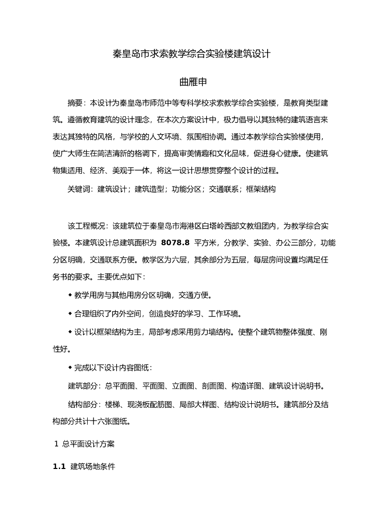 秦皇岛市求索教学综合实验楼建筑设计.doc