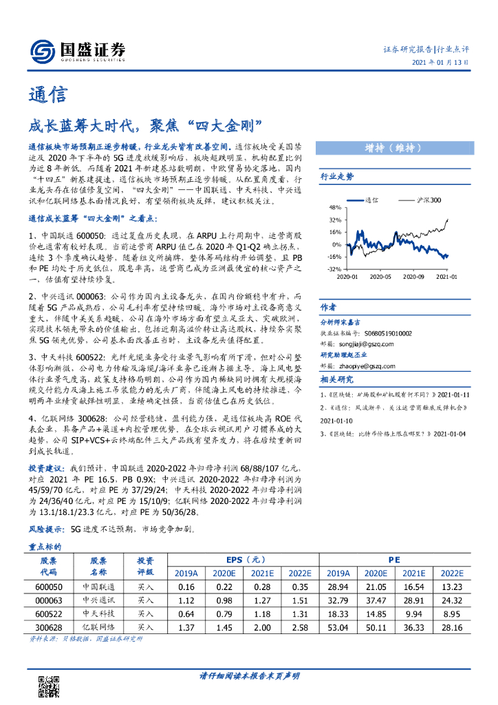 国盛证券:通信:成长蓝筹大时代,聚焦“四大金刚”.pdf