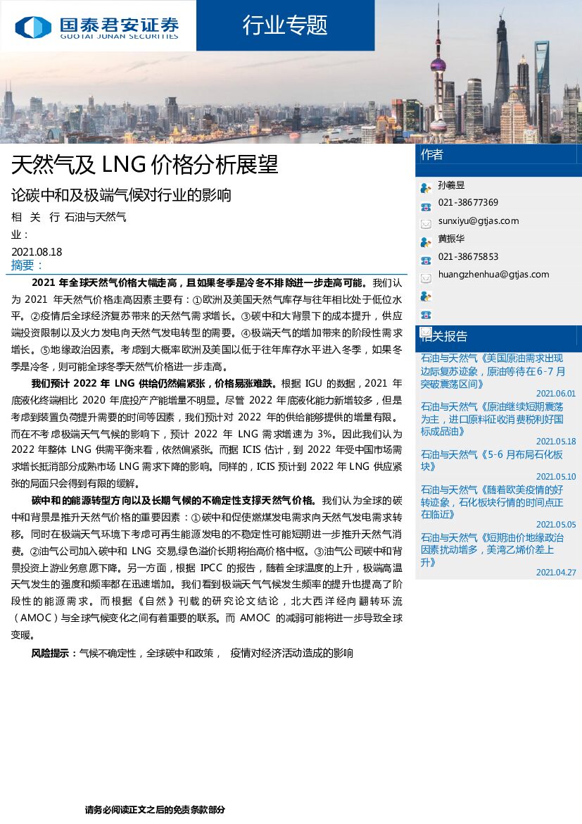 国泰君安:天然气及LNG:论碳中和及极端气候对行业的影响.pdf