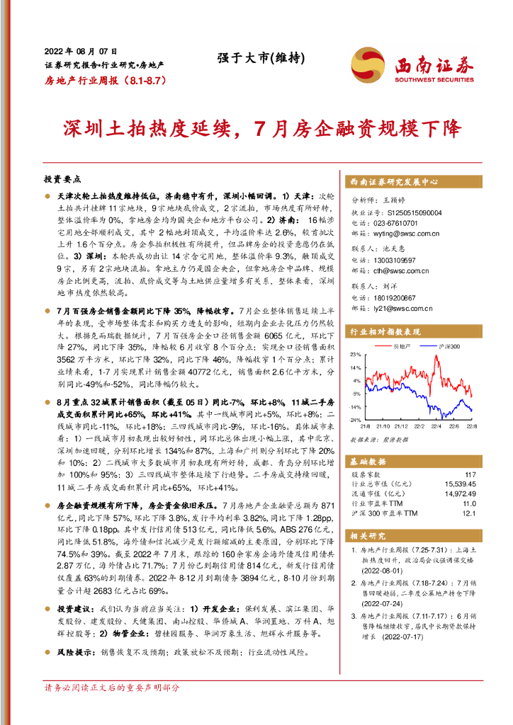 西南证券:房地产行业周报:深圳土拍热度延续,7月房企融资规模下降.pdf