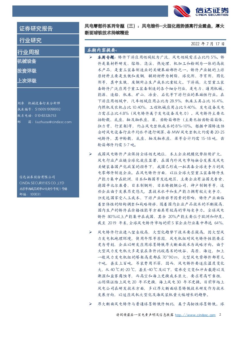 信达证券:机械设备行业专题:风电零部件系列专题(三):风电铸件—大型化趋势提高行业壁垒,厚大断面球铁技术持续精进.pdf