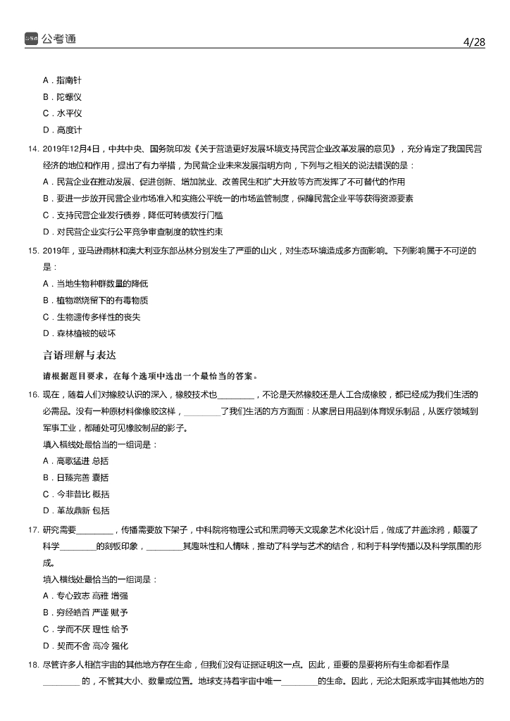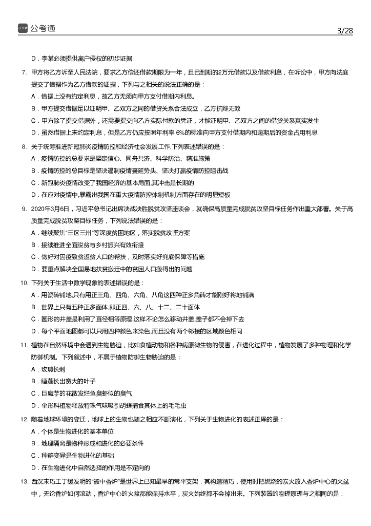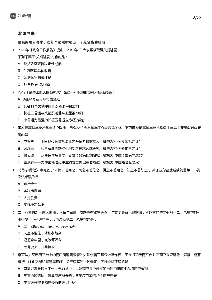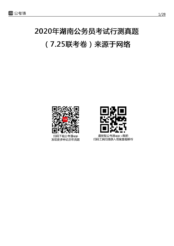 2020年湖南公务员考试行测真题及答案.pdf