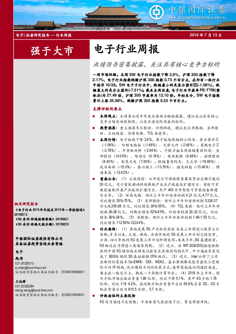 中银国际:电子行业周报:业绩预告密集披露,关注具有核心竞争力标的.pdf