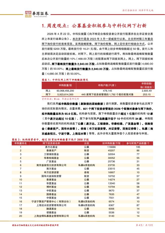 华源证券:北交所周观察第七十三期:公募基金积极参与中科仪网下申购,北证50指数基金扩容有望提振市场信心-260426.pdf