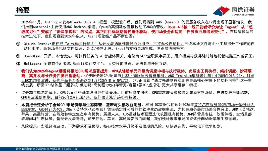 国信证券:AIAgent专题:Opus4.5开启AIAgent拐点,CPU需求迎高增.pdf