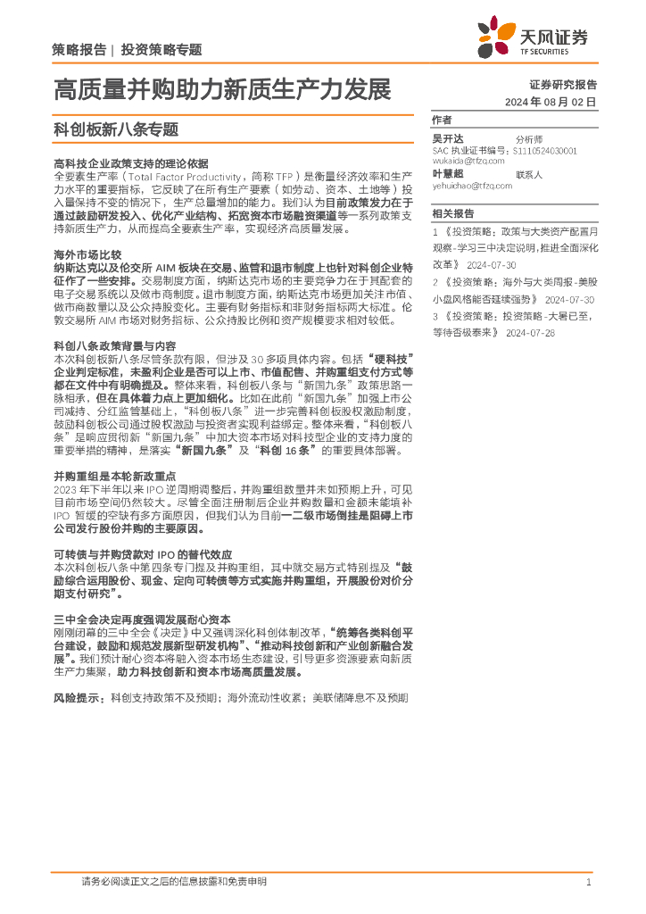 天风证券:科创板新八条专题:高质量并购助力新质生产力发展.pdf