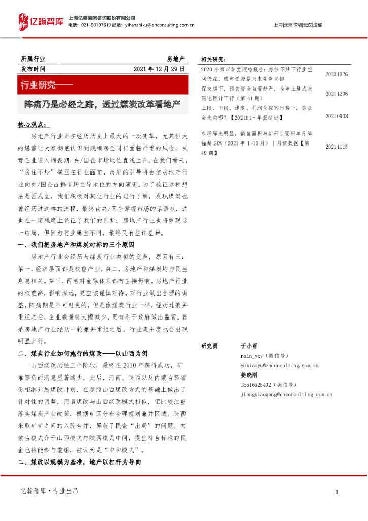 亿翰智库:房地产:阵痛乃是必经之路,透过煤炭改革看地产.pdf