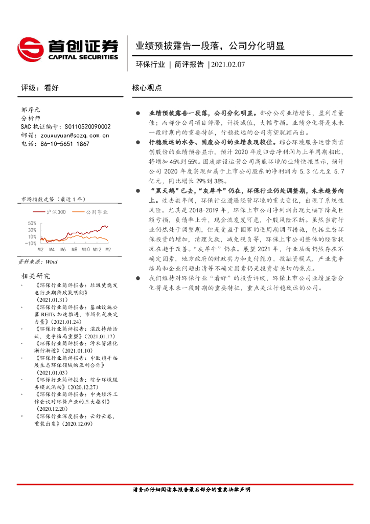 首创证券:环保行业简评报告:业绩预披露告一段落,公司分化明显.pdf