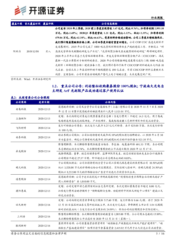 开源证券:化工行业周报:利安隆拟收购康泰股份进军润滑油添加剂市场,国产ArF光刻胶取得突破.pdf