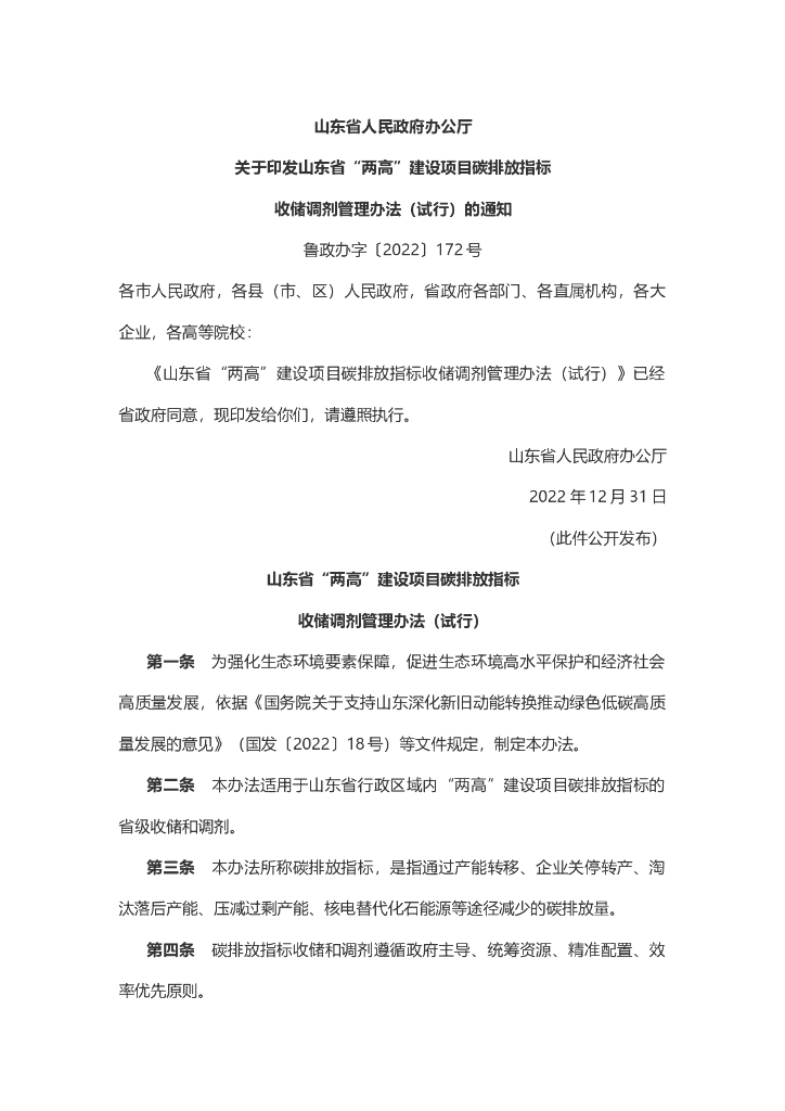 山东省“两高”建设项目碳排放指标收储调剂管理办法(试行).doc