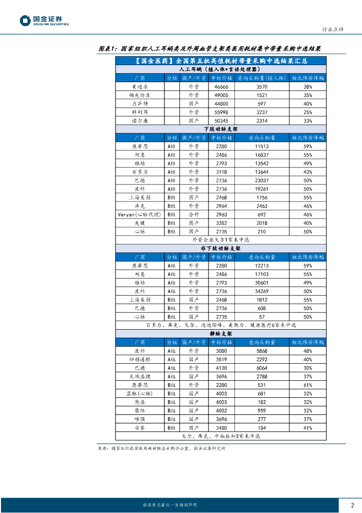 国金证券:医疗器械行业行业研究:第五批耗材国采拟中选结果公布,内外资主流产品普遍中选.pdf
