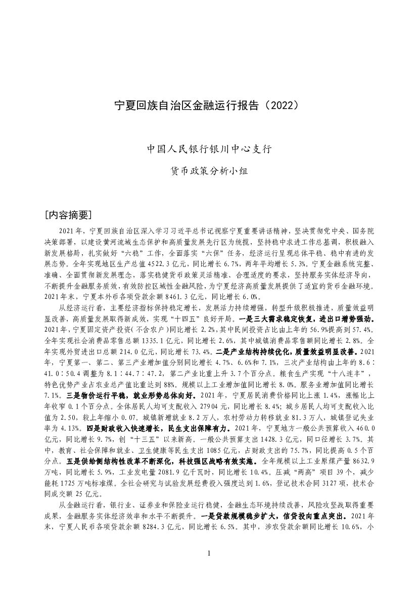 中国人民银行:宁夏回族自治区金融运行报告(2022).pdf