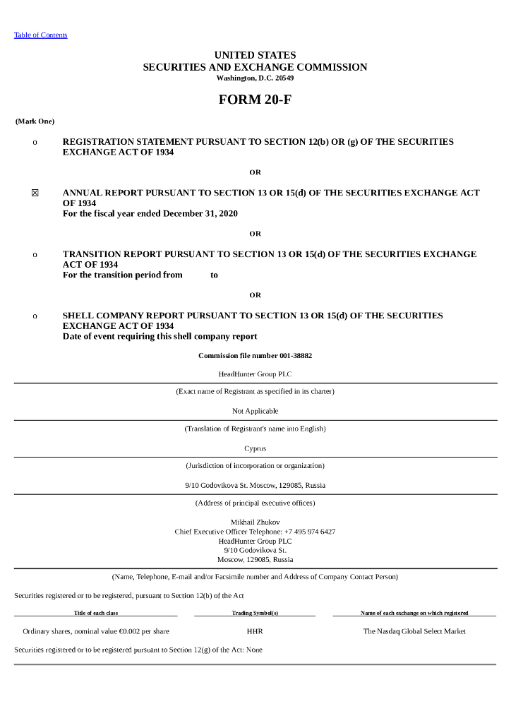HeadHunter Group PLC(HHR)2020财年年度报告(英文版).pdf
