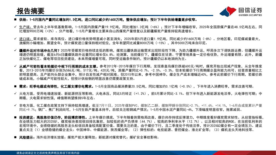 国信证券:煤炭行业2025年中期投资策略:煤价探底,基本面向好.pdf