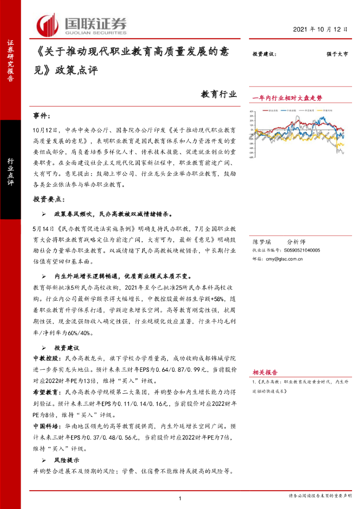 国联证券:教育行业《关于推动现代职业教育高质量发展的意见》政策点评.pdf
