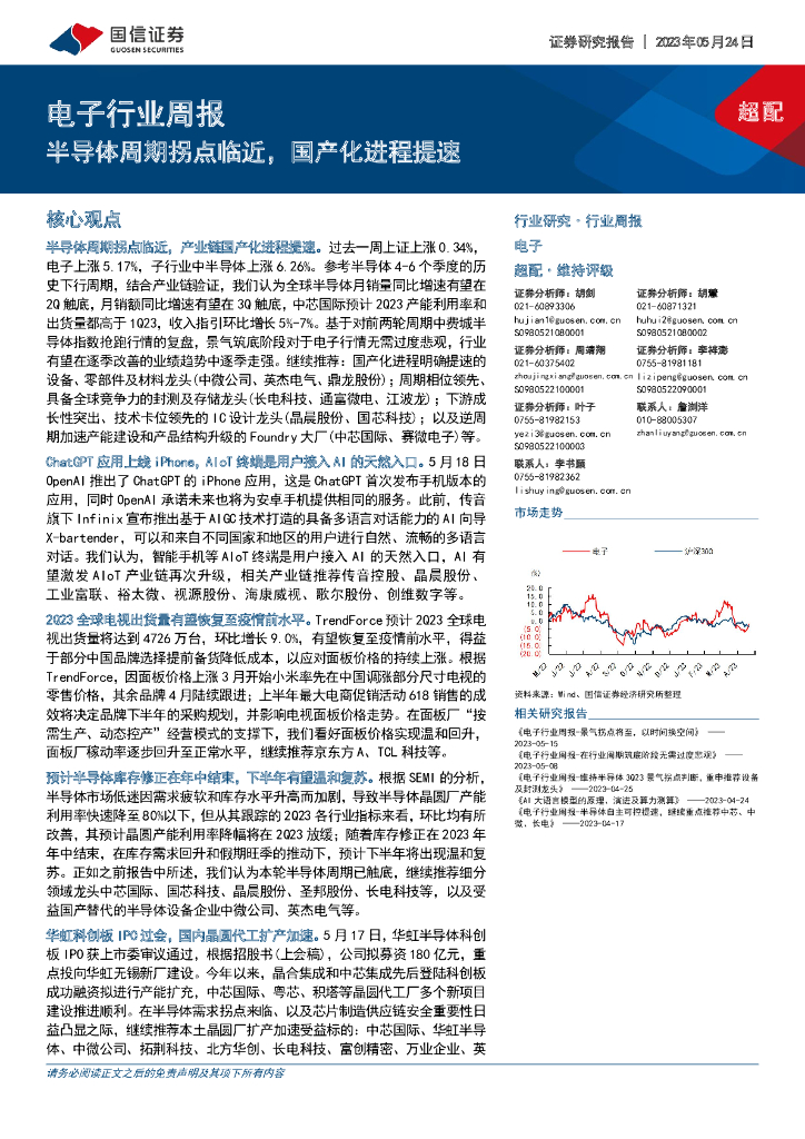 国信证券:电子行业周报:半导体周期拐点临近,国产化进程提速.pdf