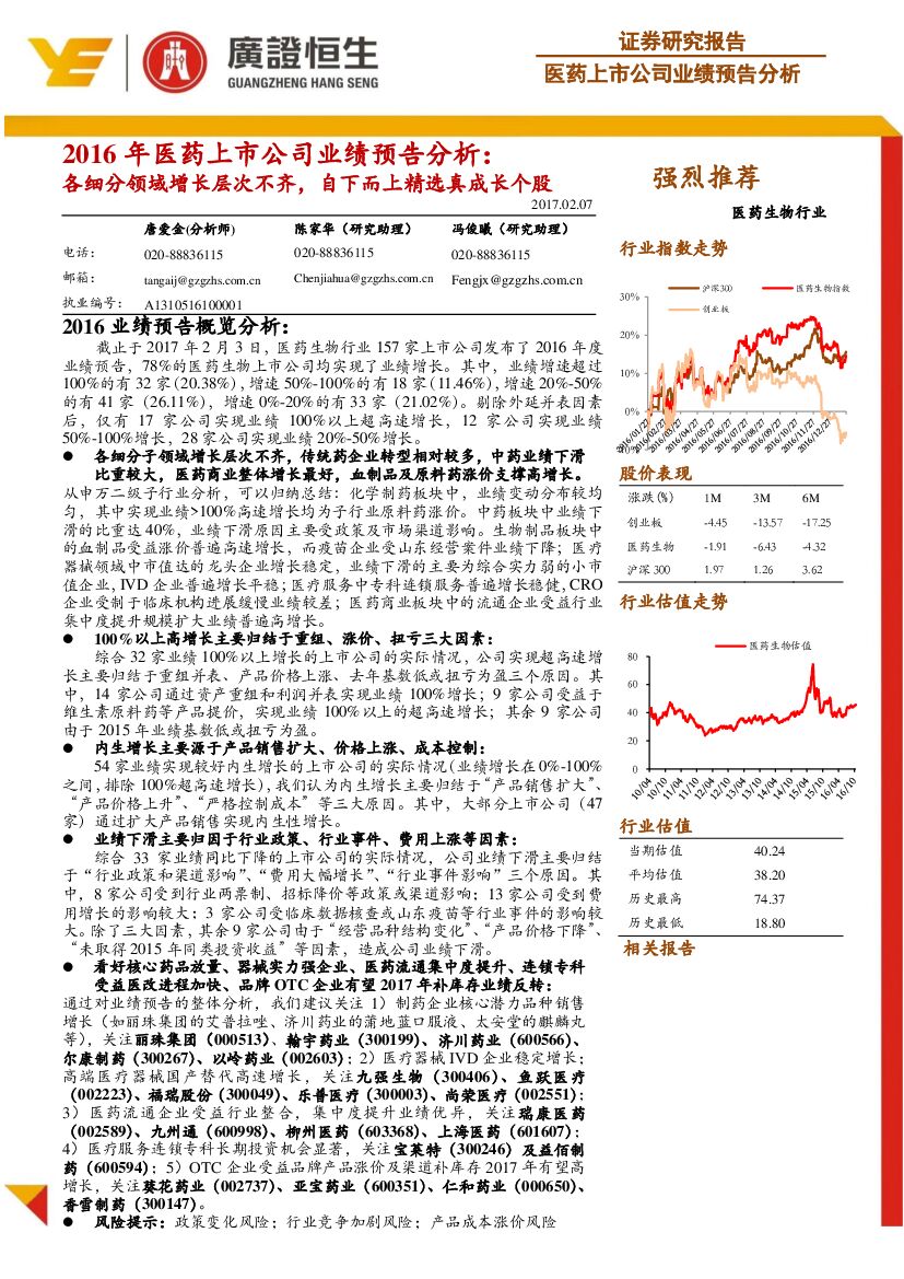 广证恒生证券研究所:2016年医药上市公司业绩预告分析:各细分领域增长层次不齐,自下而上精选真成长个股.pdf