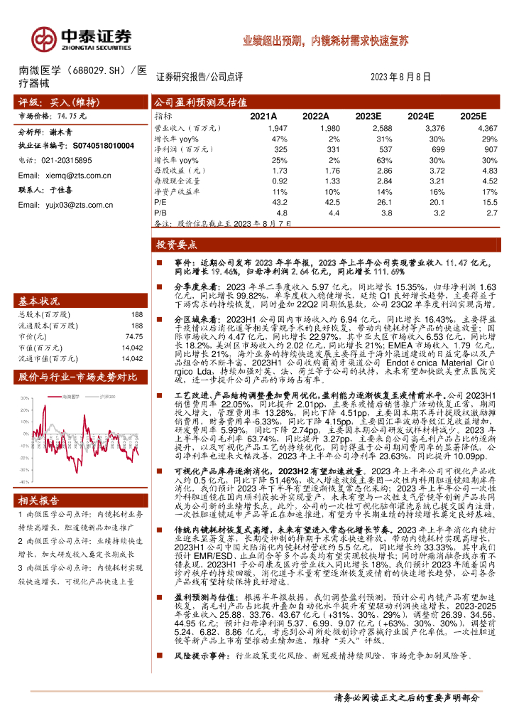 中泰证券:南微医学(688029)-业绩超出预期,内镜耗材需求快速复苏.pdf