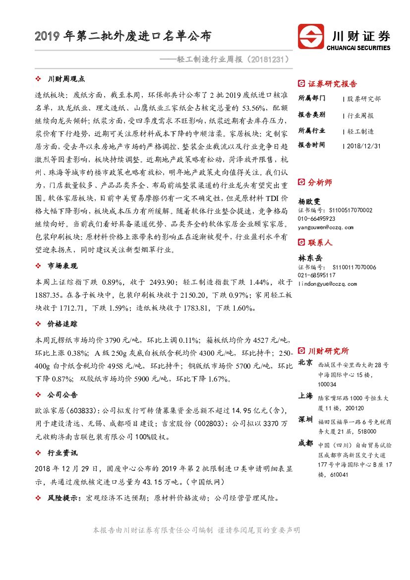 川财证券:轻工制造行业周报:2019年第二批外废进口名单公布.pdf