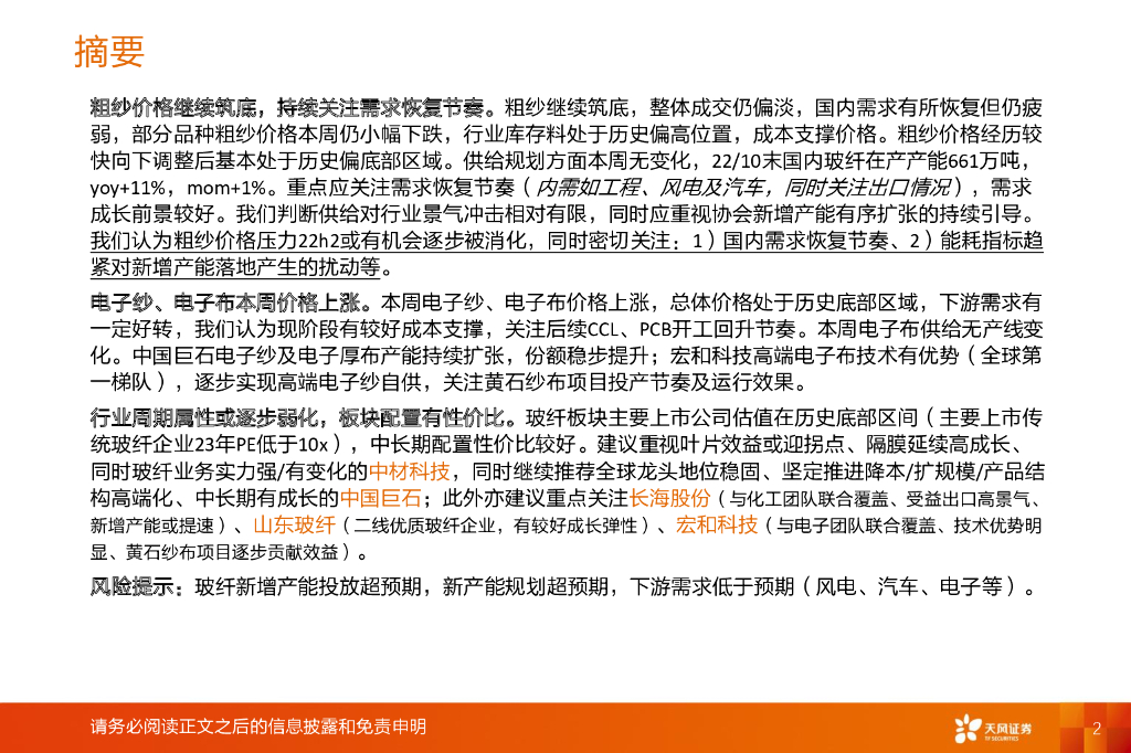 天风证券:玻纤周跟踪:粗纱价格继续筑底,电子布较多上调价格.pdf