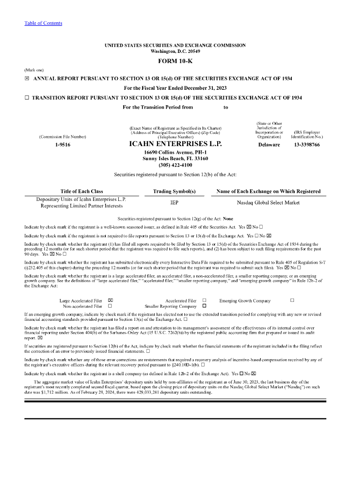 Icahn Enterprises L.P.(IEP)2023财年年度报告(英文版).pdf