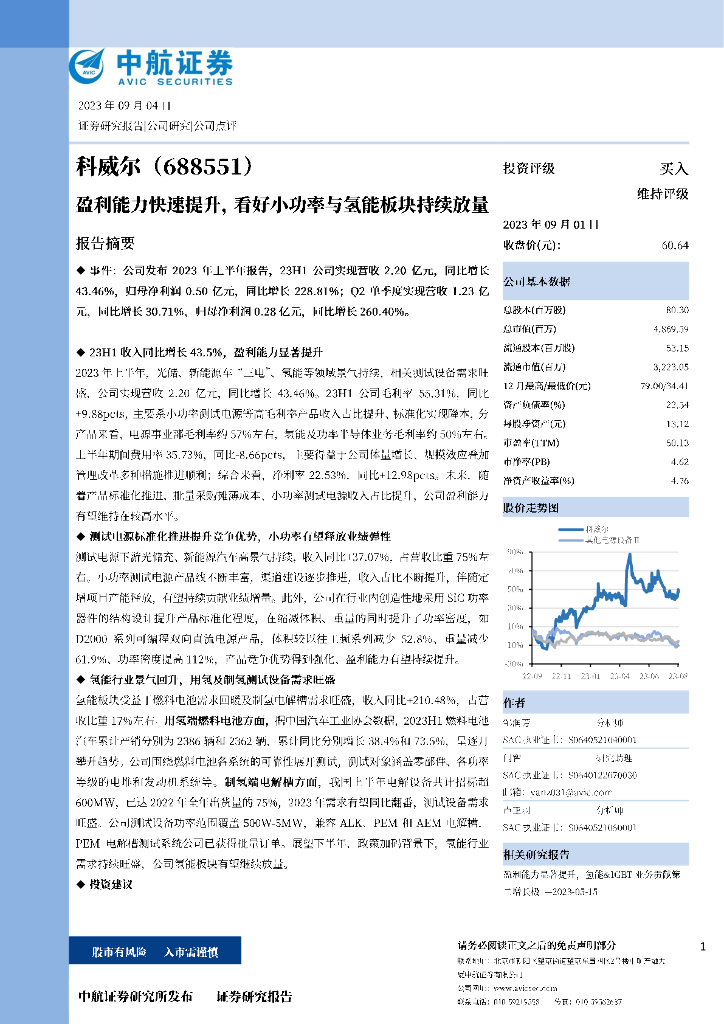 中航证券:科威尔(688551)-盈利能力快速提升,看好小功率与氢能板块持续放量.pdf