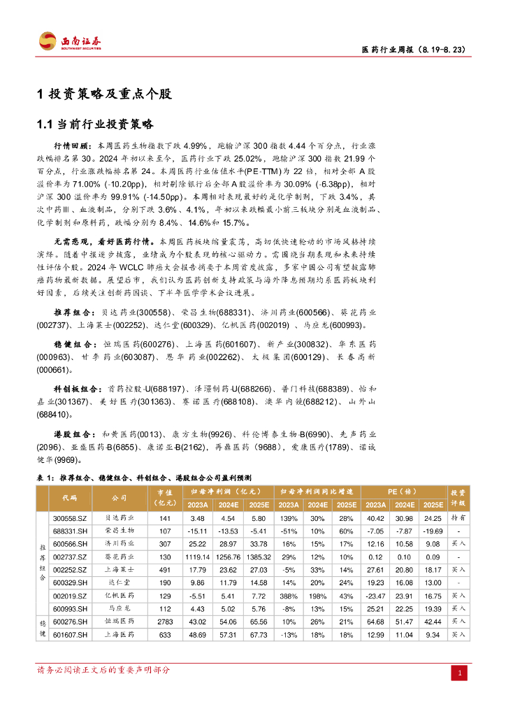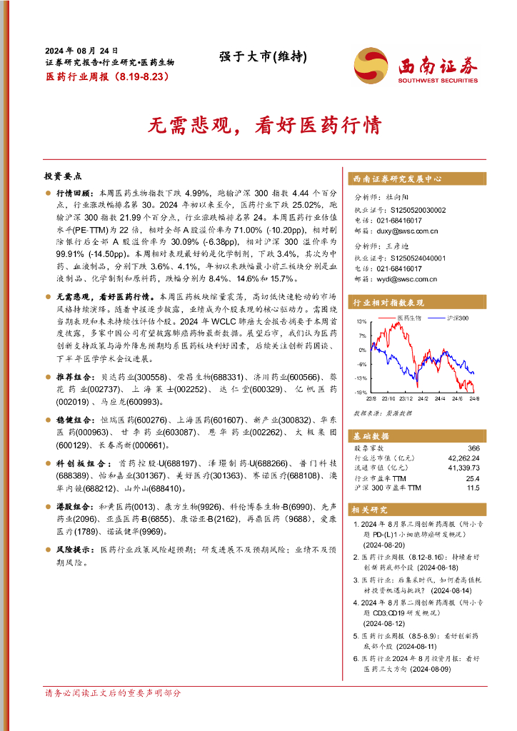 西南证券:医药行业周报:无需悲观,看好医药行情.pdf