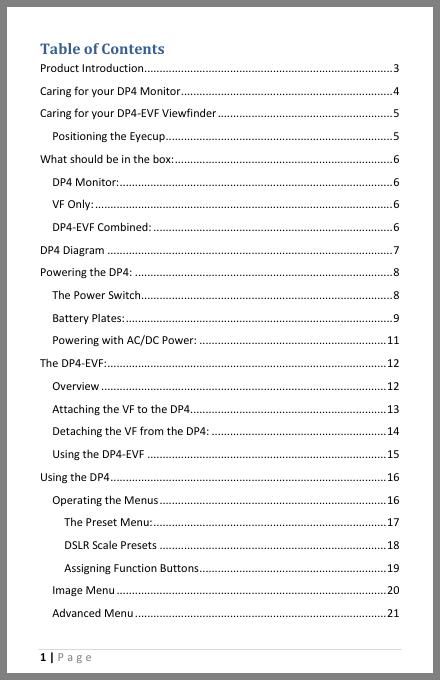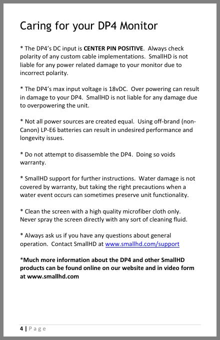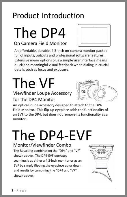 SMALLHD DP4 Field Monitor, DP4-EVF Viewfinder 用户手册.pdf