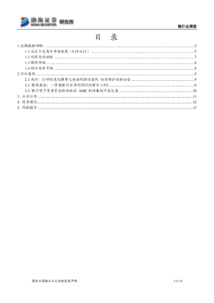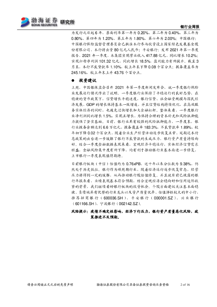 渤海证券:银行业周报:银行业一季度净利润同比增长1.5%,行业基本面持续向好.pdf