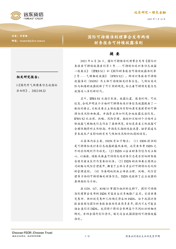 远东资信:国际可持续准则理事会发布两项财务报告可持续披露准则.pdf
